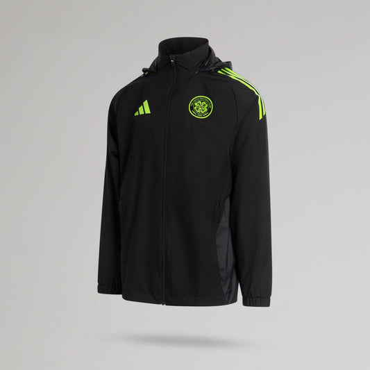 adidas Celtic 2025/26 Black and Neon Green All Weather Jacket